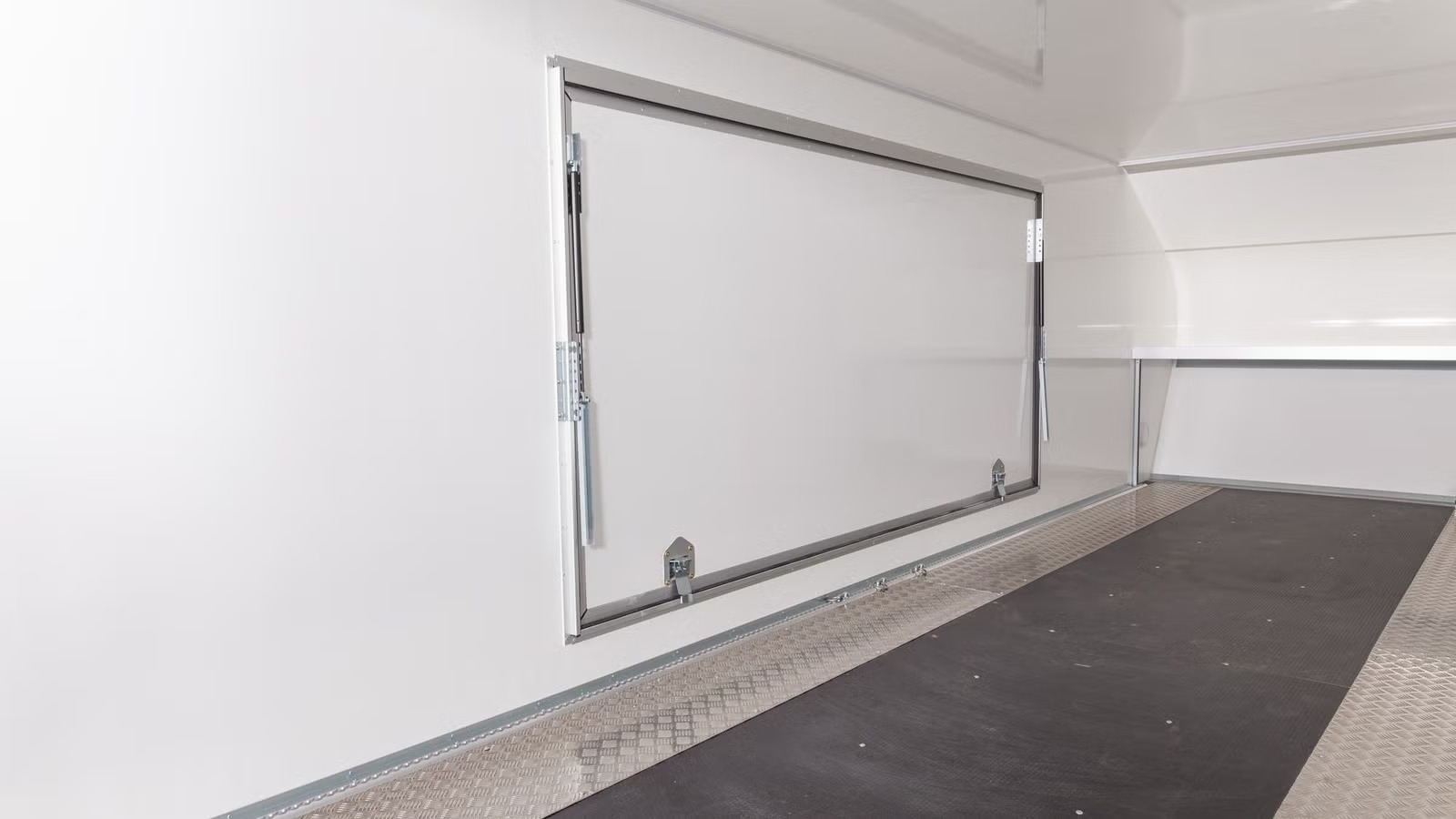 Der Respo RB 6535 Anhänger ist mit einem feuerverzinkten und verschraubten Fahrgestell, 40 mm starken wasserdichten Sandwich-Seitenwänden, wasserdichten LED-Leuchten