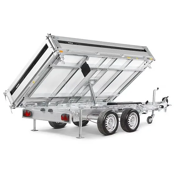 Dieser robuste zweiachsige Kippanhänger ist ideal für Bau- und Transportprofis geeignet. Er wurde speziell für den effizienten Transport und das einfache Entladen von Erde, Sand, Kies und Baumaterialien entwickelt.