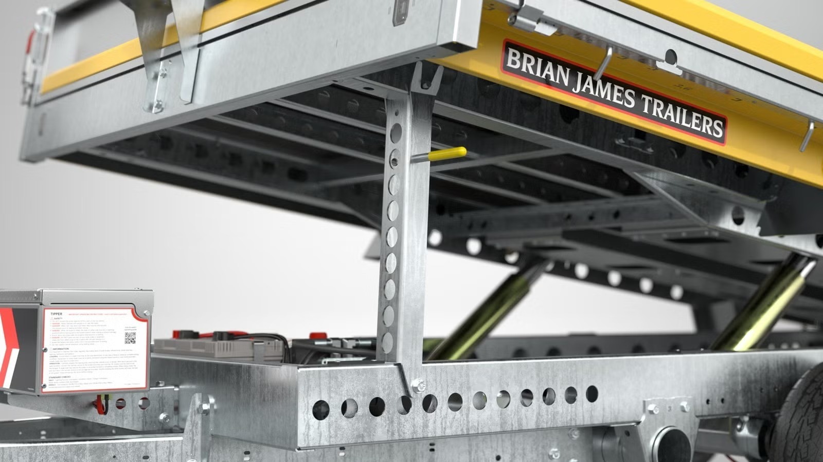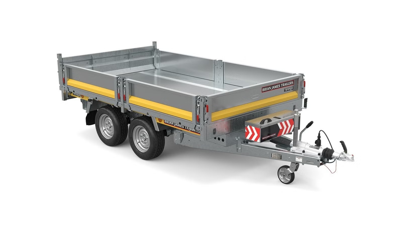 Die Brian James Kippanhänger sind für anspruchsvolle Nutzer entwickelt worden. Größere Modelle der Serie sind sogar mit 200 cm Innenbreite und zwei Kippzylindern erhältlich. Dadurch bietet die Baureihe eine besonders starke und gleichmäßige Kippkraft. Die leistungsstarke elektrohydraulische Pumpe sorgt für optimale Hubleistung und macht den Anhänger besonders effizient im Alltag.