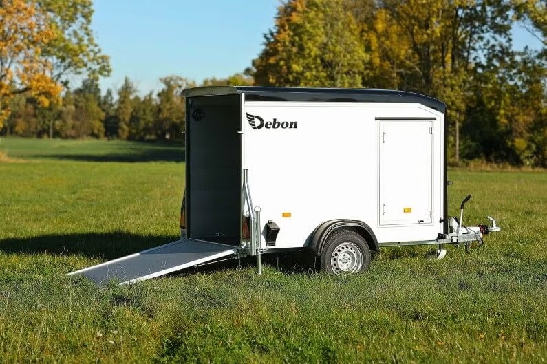 Kofferanhänger Debon Roadster 255 – 1.300 kg – aerodynamischer Anhänger mit Rampe und Seitentür