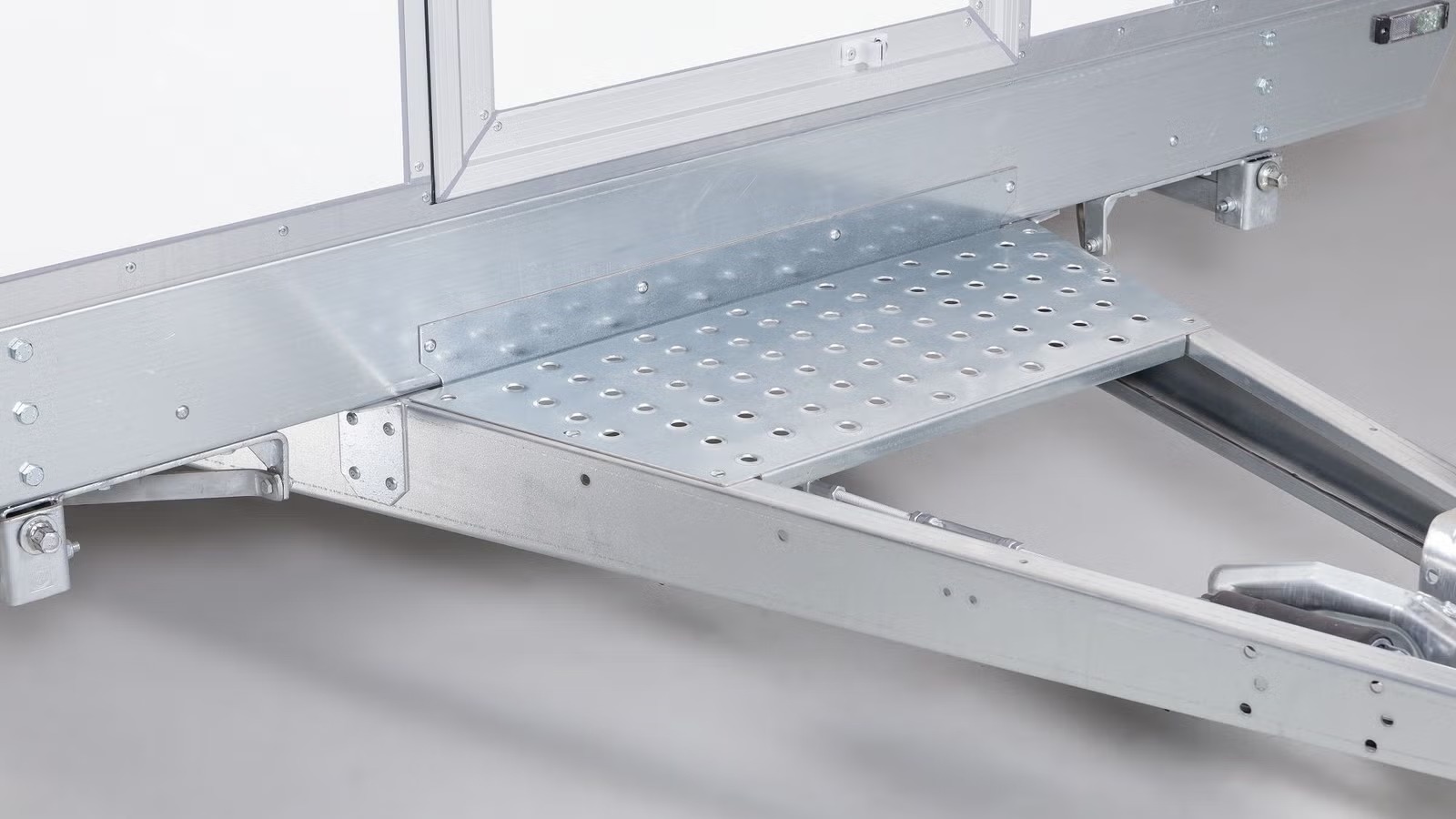 Der Anhänger verfügt über ein feuerverzinktes, verschraubtes Fahrgestell und ist mit EPS-Isolierung, witterungsbeständigen laminierten Glasfaserwänden und -dach, einem rutschfesten und kratzfesten PVC-Boden sowie LED-Innenbeleuchtung ausgestattet. Dadurch ist der Anhänger besonders alltagstauglich und für den professionellen Einsatz bei unterschiedlichen Wetterbedingungen geeignet.